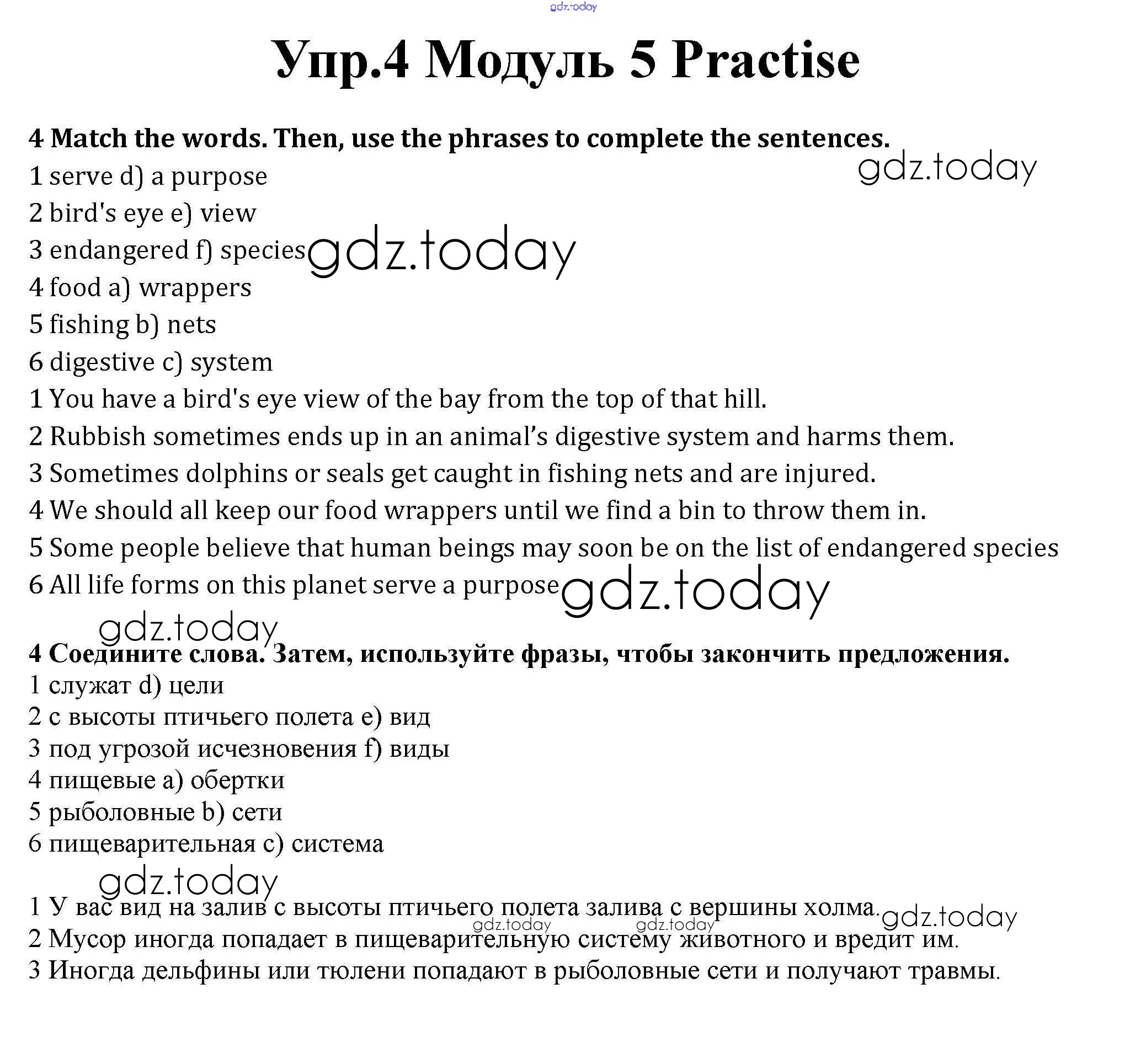 На страницах сайта gdz.today вы найдете учебный и вспомогательный материал, направленный на улучшения знаний школьной программы. ГДЗ - онлайн мир знаний Vocabulary Practice Решение к Module 5 4 Рабочей тетради по Английскому языку для 10 класса Афанасьева, Дули Базовый уровень Просвещение Spotlight 2015