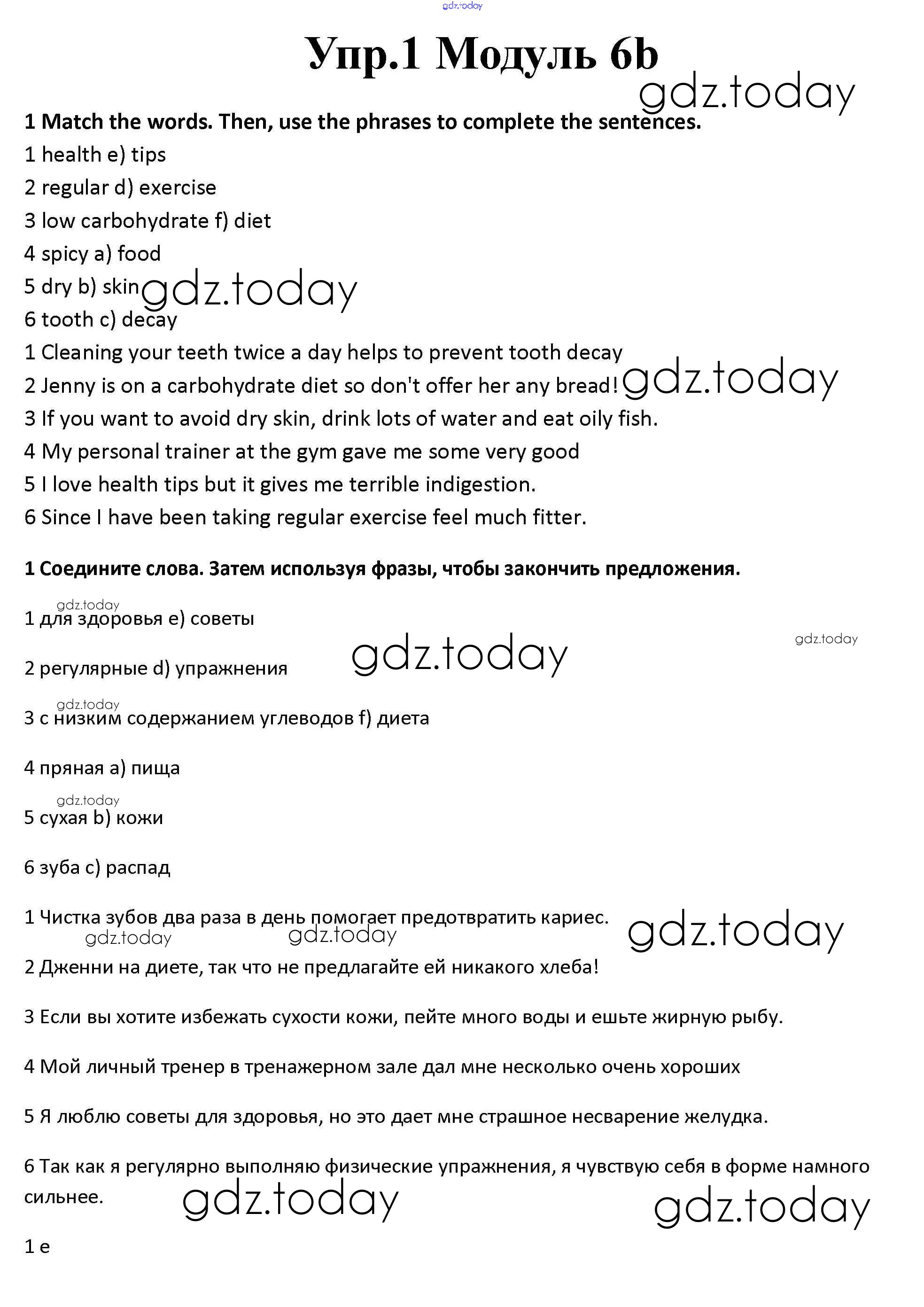 На страницах сайта gdz.today вы найдете учебный и вспомогательный материал, направленный на улучшения знаний школьной программы. ГДЗ - онлайн мир знаний Часть 6b Решение к Module 6 1 Рабочей тетради по Английскому языку для 10 класса Афанасьева, Дули Базовый уровень Просвещение Spotlight 2015
