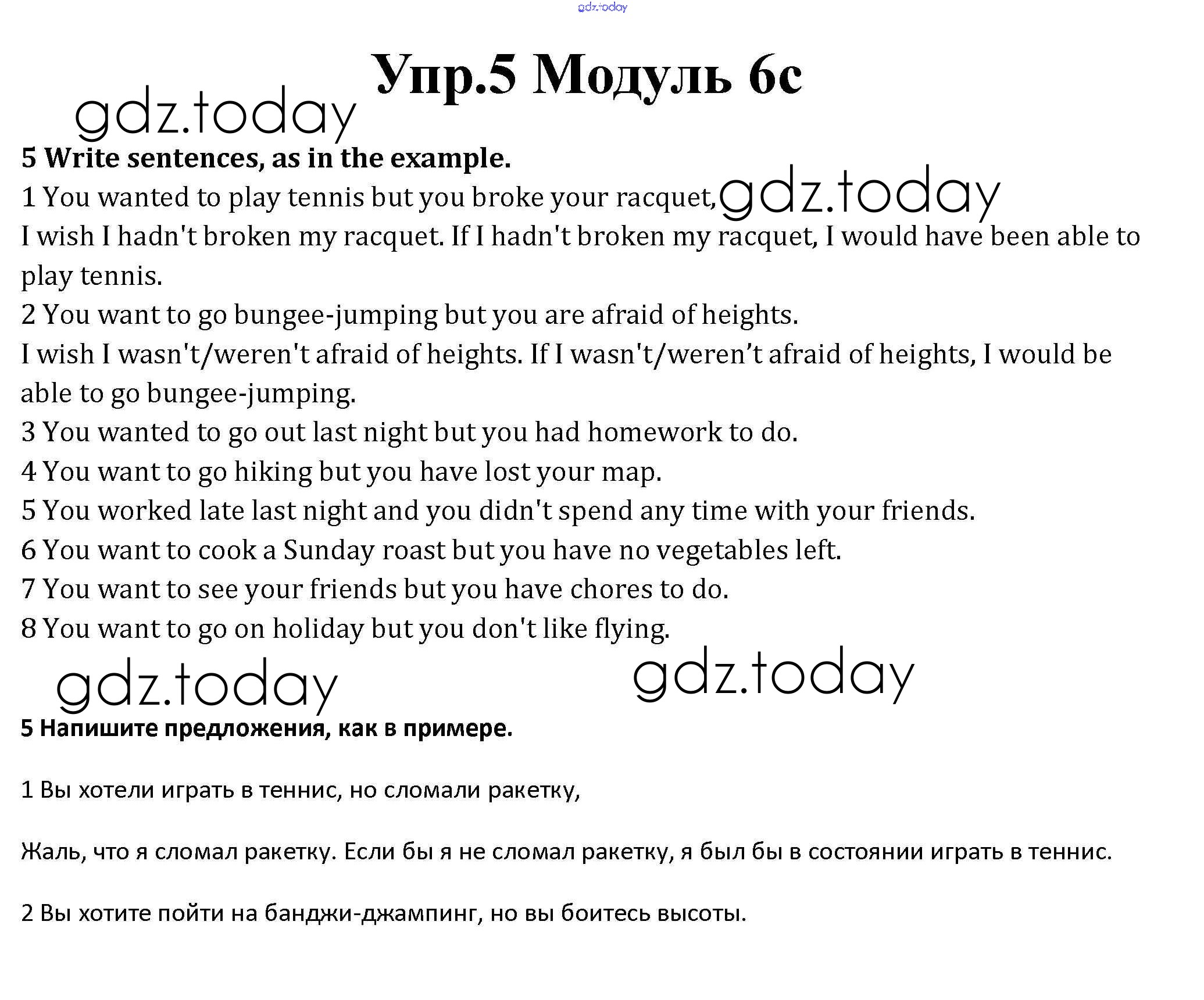 На страницах сайта gdz.today вы найдете учебный и вспомогательный материал, направленный на улучшения знаний школьной программы. ГДЗ - онлайн мир знаний Часть 6c Решение к Module 6 5 Рабочей тетради по Английскому языку для 10 класса Афанасьева, Дули Базовый уровень Просвещение Spotlight 2015