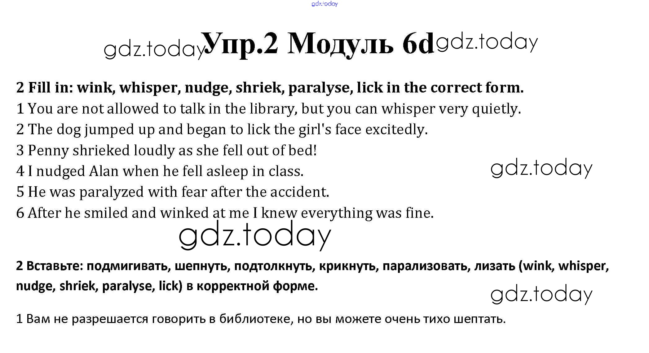 На страницах сайта gdz.today вы найдете учебный и вспомогательный материал, направленный на улучшения знаний школьной программы. ГДЗ - онлайн мир знаний Часть 6d Решение к Module 6 2 Рабочей тетради по Английскому языку для 10 класса Афанасьева, Дули Базовый уровень Просвещение Spotlight 2015