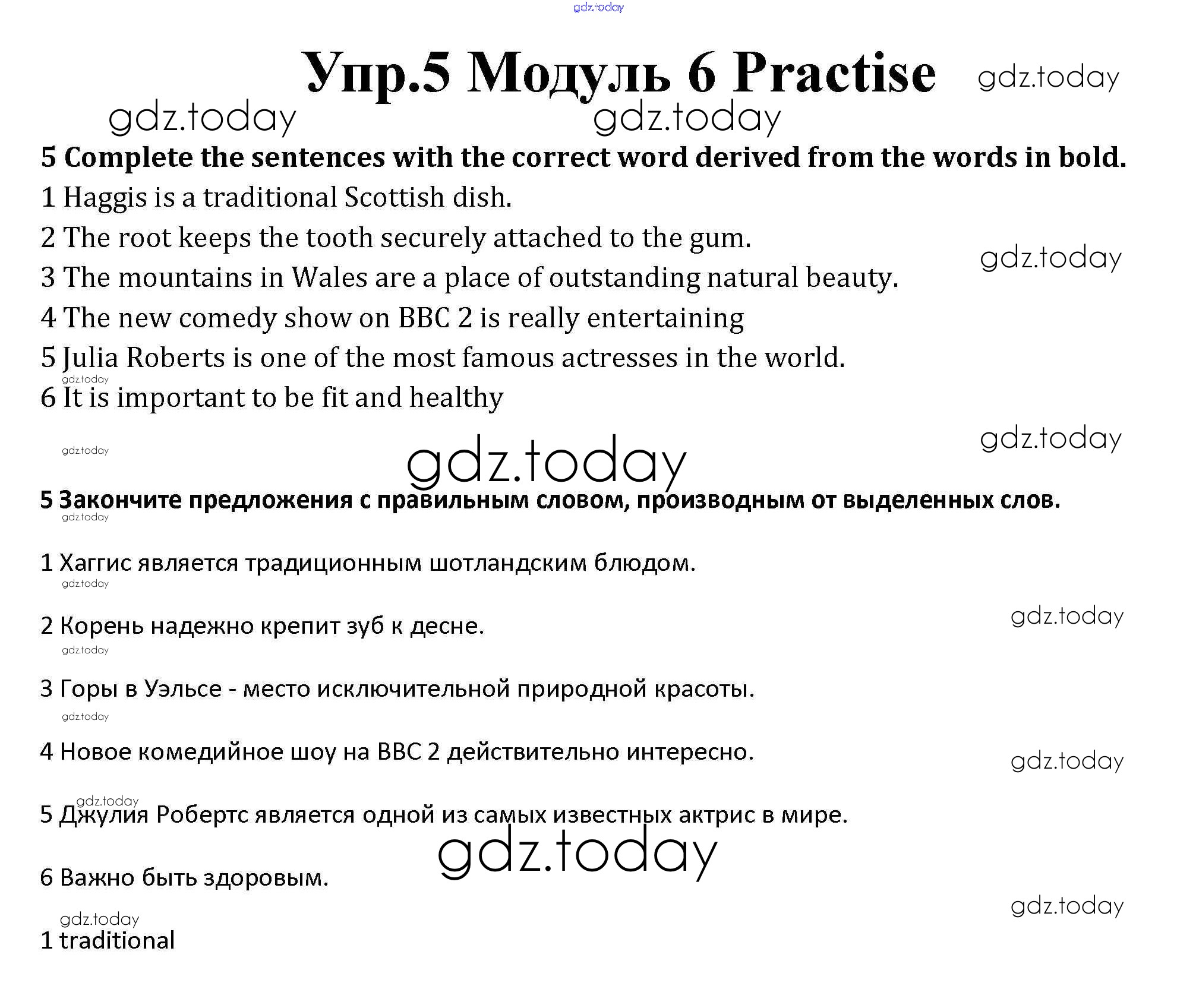 На страницах сайта gdz.today вы найдете учебный и вспомогательный материал, направленный на улучшения знаний школьной программы. ГДЗ - онлайн мир знаний Vocabulary Practice Решение к Module 6 5 Рабочей тетради по Английскому языку для 10 класса Афанасьева, Дули Базовый уровень Просвещение Spotlight 2015