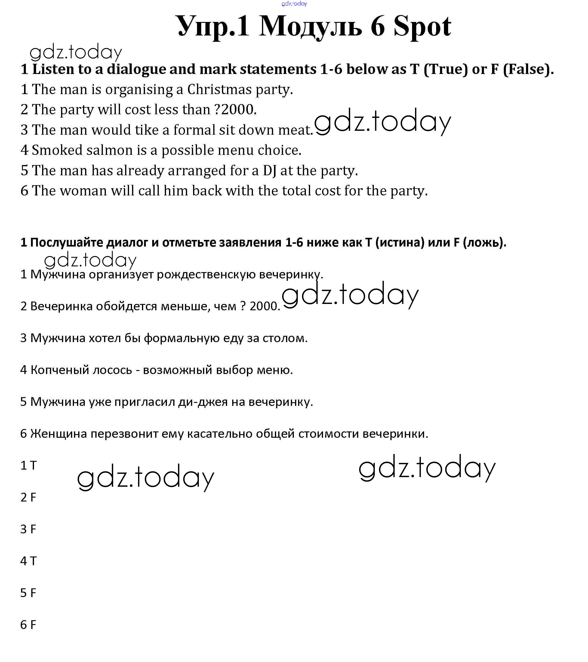 На страницах сайта gdz.today вы найдете учебный и вспомогательный материал, направленный на улучшения знаний школьной программы. ГДЗ - онлайн мир знаний Spotlight on Exams Решение к Module 6 1 Рабочей тетради по Английскому языку для 10 класса Афанасьева, Дули Базовый уровень Просвещение Spotlight 2015
