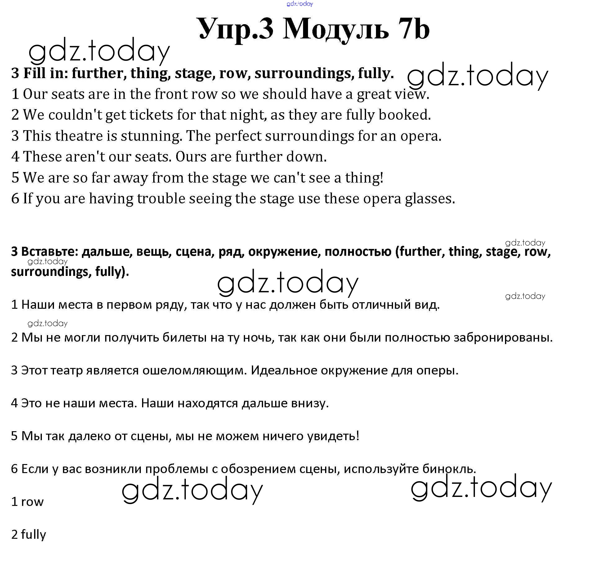 На страницах сайта gdz.today вы найдете учебный и вспомогательный материал, направленный на улучшения знаний школьной программы. ГДЗ - онлайн мир знаний Часть 7b Решение к Module 7 3 Рабочей тетради по Английскому языку для 10 класса Афанасьева, Дули Базовый уровень Просвещение Spotlight 2015