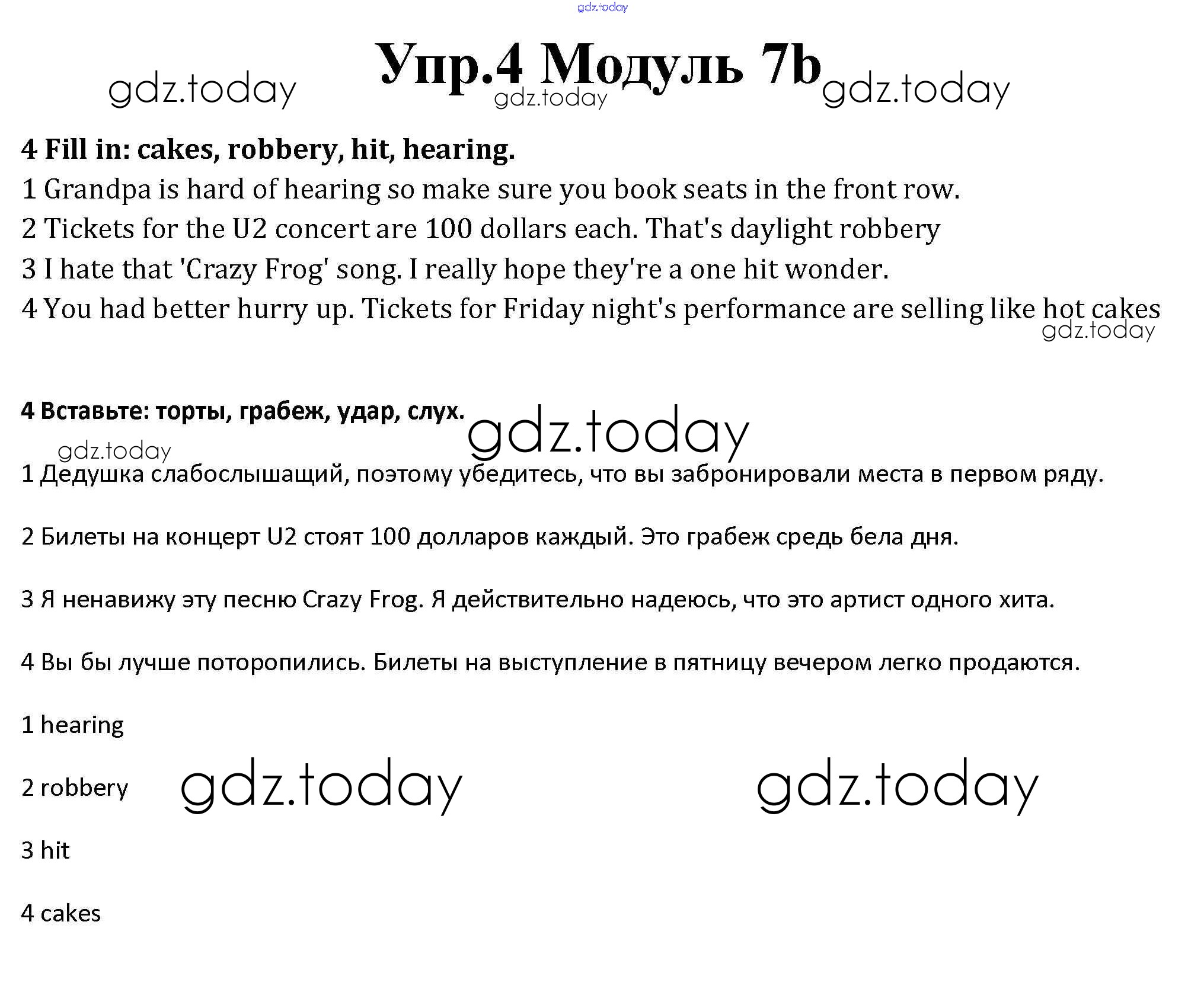 На страницах сайта gdz.today вы найдете учебный и вспомогательный материал, направленный на улучшения знаний школьной программы. ГДЗ - онлайн мир знаний Часть 7b Решение к Module 7 4 Рабочей тетради по Английскому языку для 10 класса Афанасьева, Дули Базовый уровень Просвещение Spotlight 2015