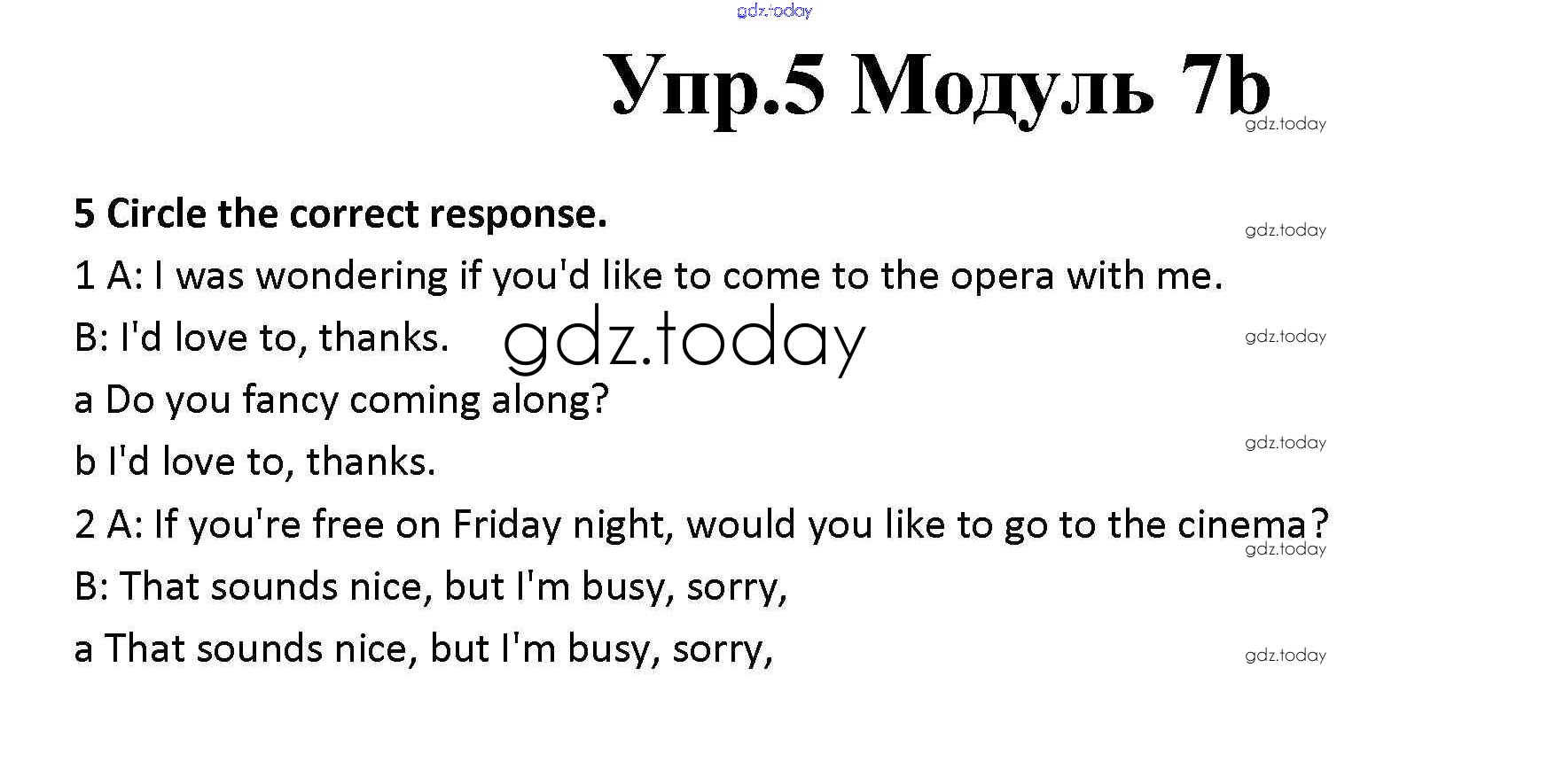 На страницах сайта gdz.today вы найдете учебный и вспомогательный материал, направленный на улучшения знаний школьной программы. ГДЗ - онлайн мир знаний Часть 7b Решение к Module 7 5 Рабочей тетради по Английскому языку для 10 класса Афанасьева, Дули Базовый уровень Просвещение Spotlight 2015