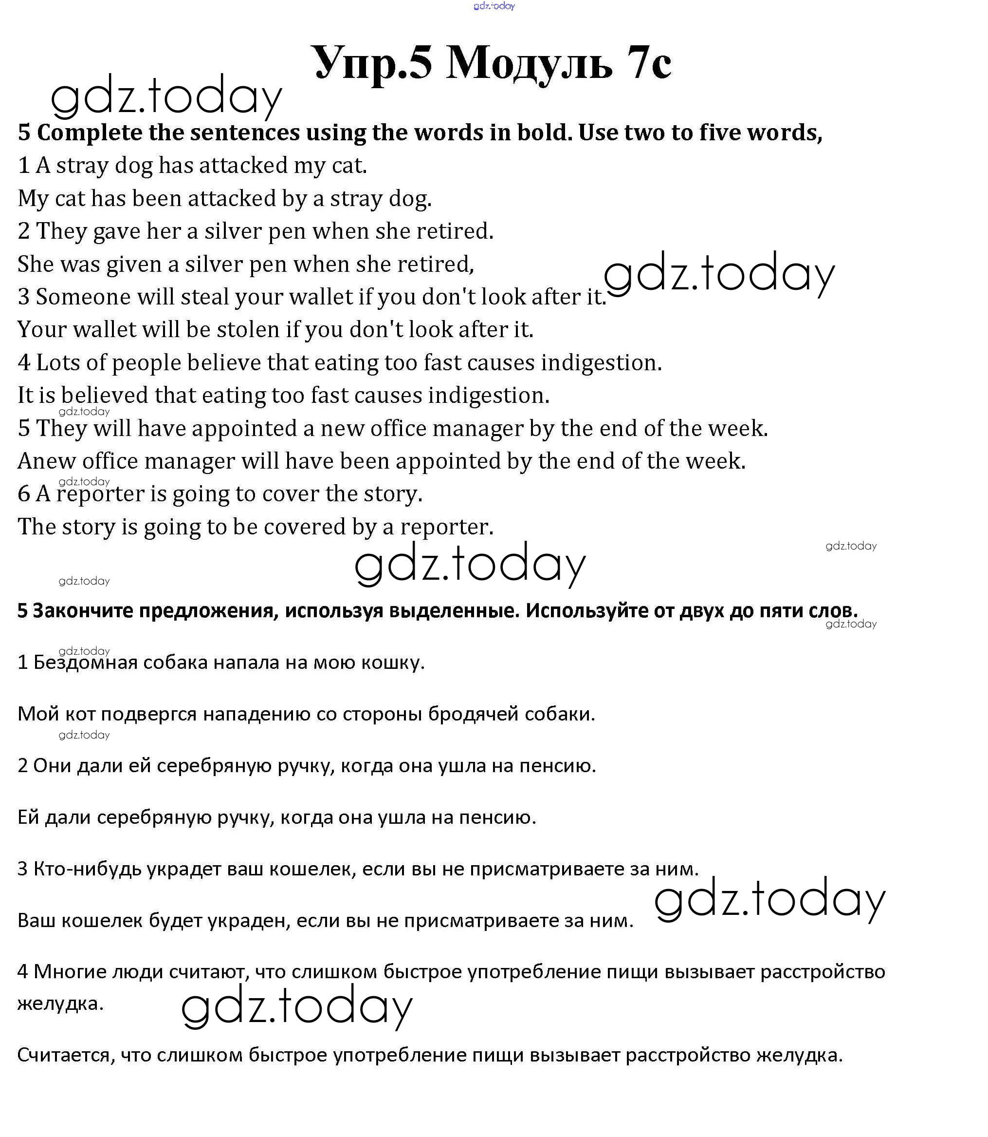 На страницах сайта gdz.today вы найдете учебный и вспомогательный материал, направленный на улучшения знаний школьной программы. ГДЗ - онлайн мир знаний Часть 7c Решение к Module 7 5 Рабочей тетради по Английскому языку для 10 класса Афанасьева, Дули Базовый уровень Просвещение Spotlight 2015