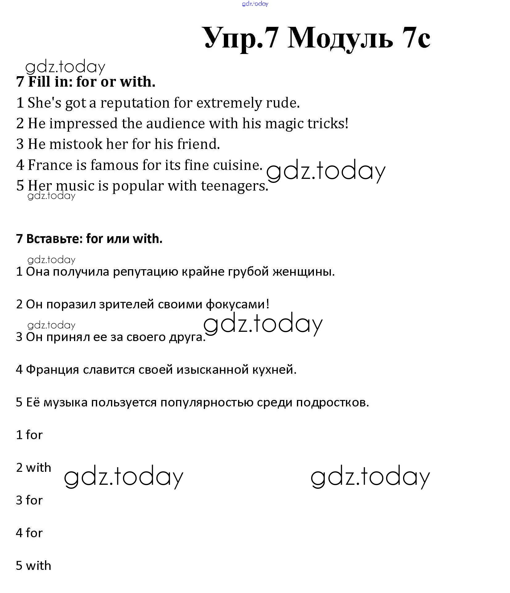 На страницах сайта gdz.today вы найдете учебный и вспомогательный материал, направленный на улучшения знаний школьной программы. ГДЗ - онлайн мир знаний Часть 7c Решение к Module 7 7 Рабочей тетради по Английскому языку для 10 класса Афанасьева, Дули Базовый уровень Просвещение Spotlight 2015