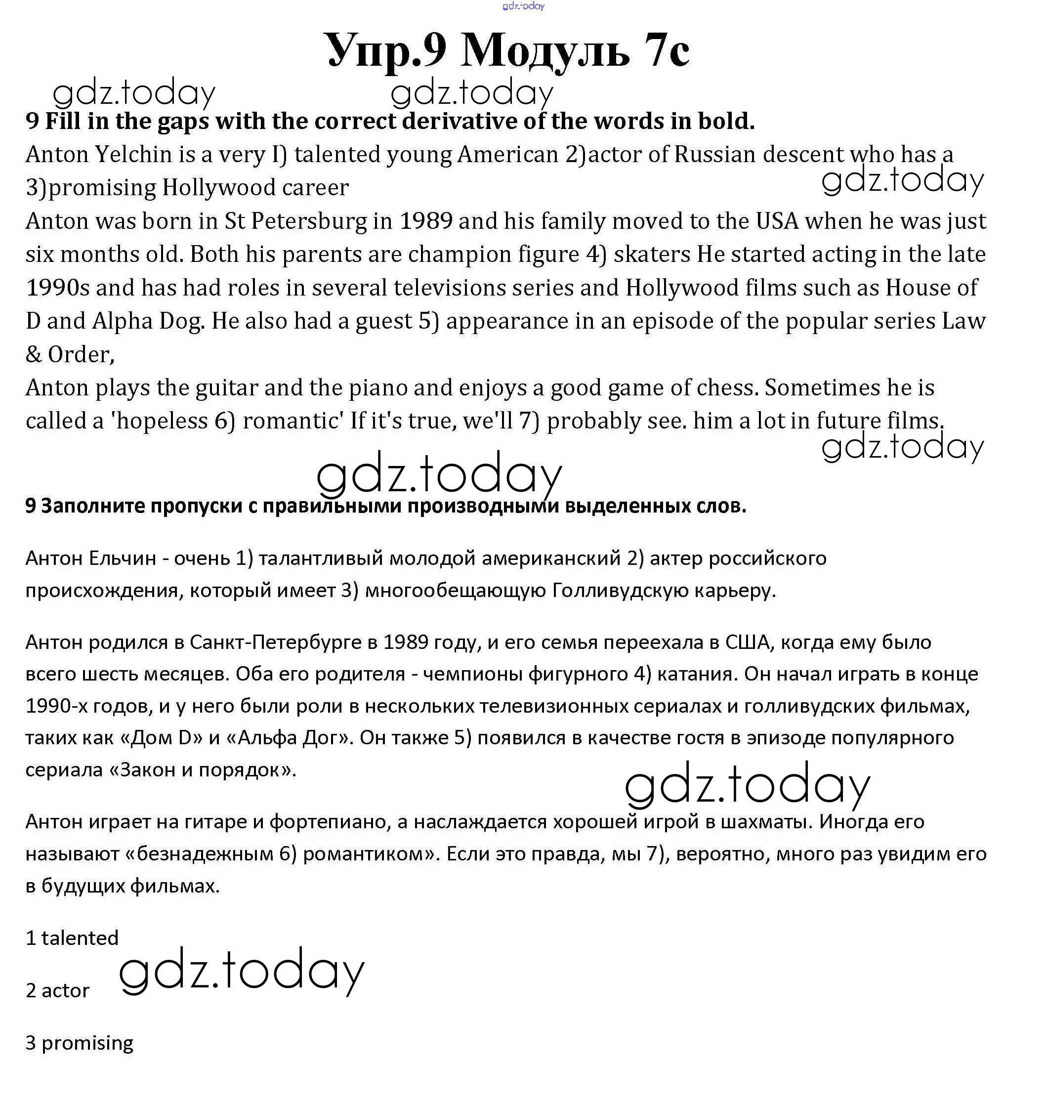 На страницах сайта gdz.today вы найдете учебный и вспомогательный материал, направленный на улучшения знаний школьной программы. ГДЗ - онлайн мир знаний Часть 7c Решение к Module 7 9 Рабочей тетради по Английскому языку для 10 класса Афанасьева, Дули Базовый уровень Просвещение Spotlight 2015