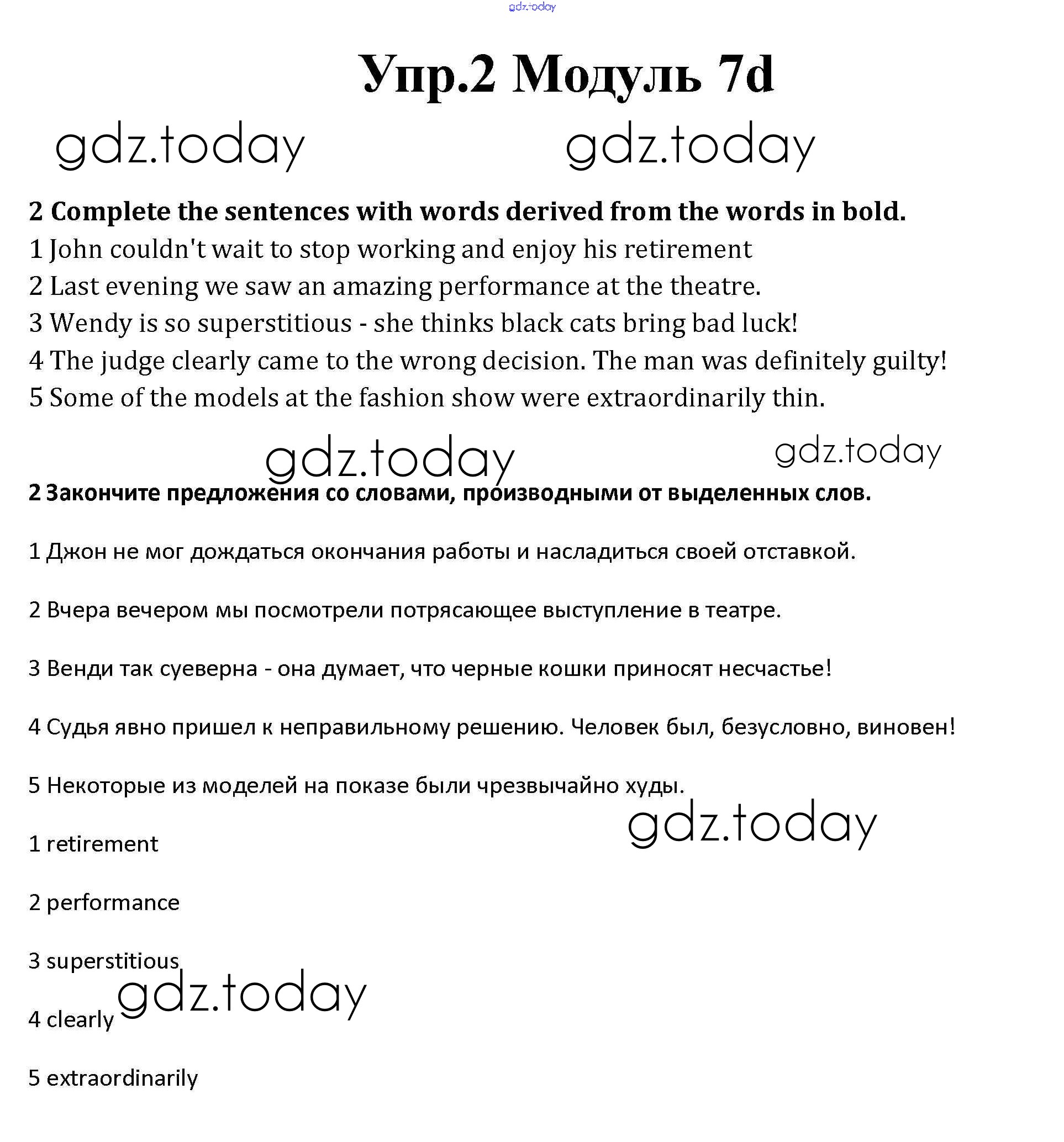 На страницах сайта gdz.today вы найдете учебный и вспомогательный материал, направленный на улучшения знаний школьной программы. ГДЗ - онлайн мир знаний Часть 7d Решение к Module 7 2 Рабочей тетради по Английскому языку для 10 класса Афанасьева, Дули Базовый уровень Просвещение Spotlight 2015