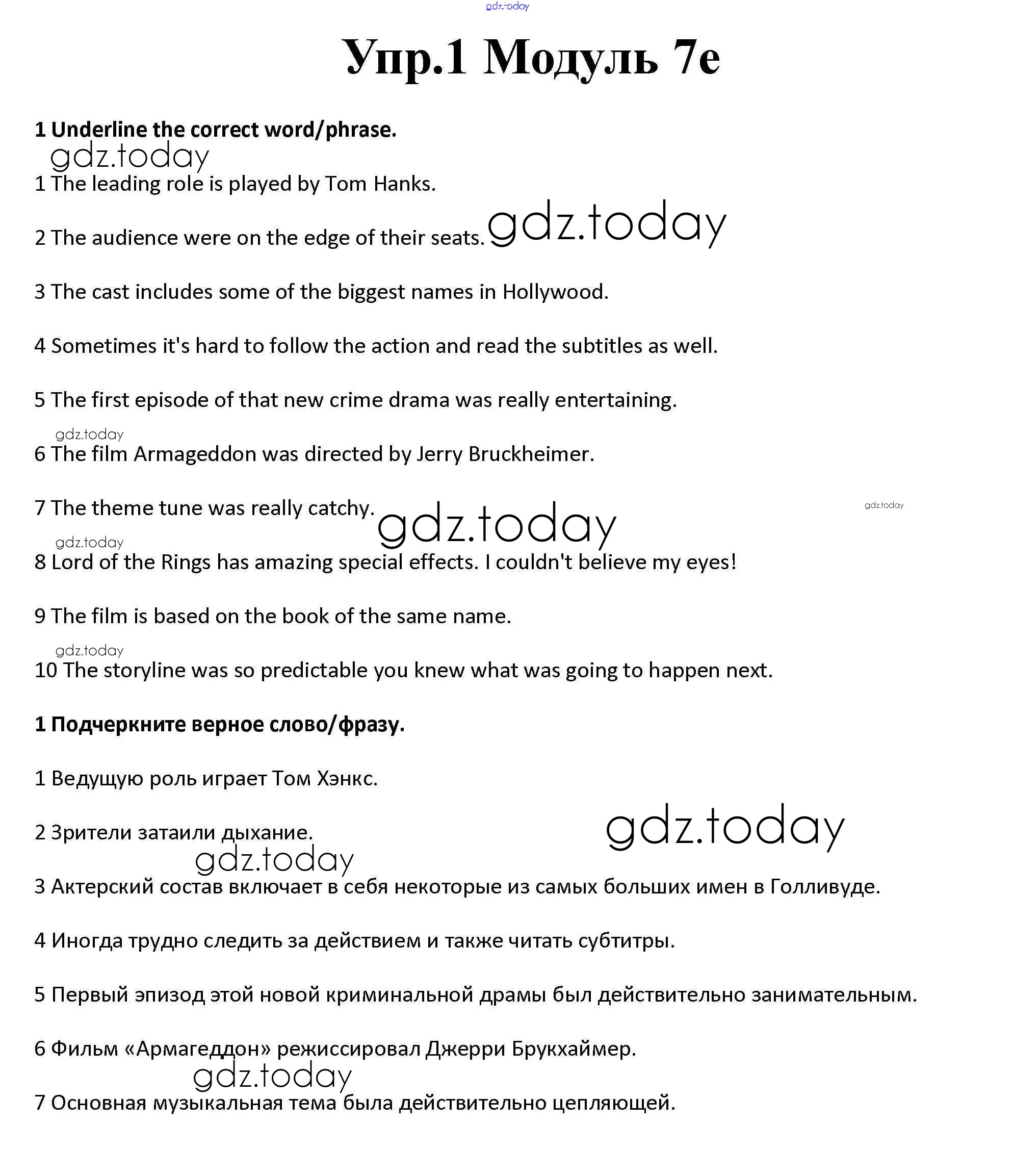 На страницах сайта gdz.today вы найдете учебный и вспомогательный материал, направленный на улучшения знаний школьной программы. ГДЗ - онлайн мир знаний Часть 7e Решение к Module 7 1 Рабочей тетради по Английскому языку для 10 класса Афанасьева, Дули Базовый уровень Просвещение Spotlight 2015