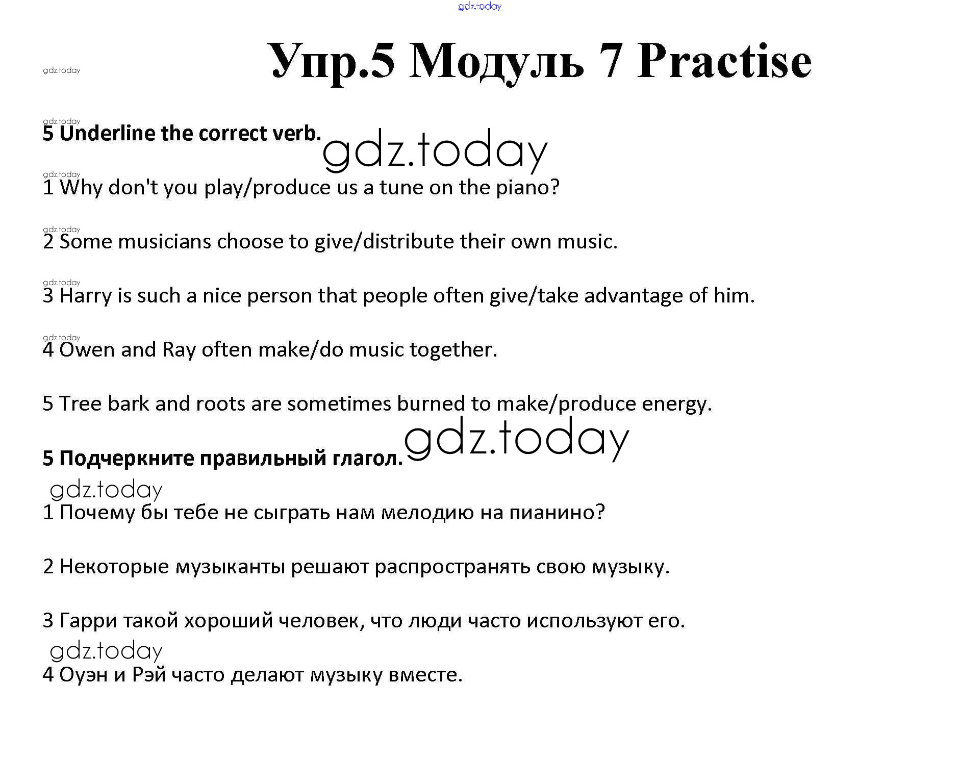 На страницах сайта gdz.today вы найдете учебный и вспомогательный материал, направленный на улучшения знаний школьной программы. ГДЗ - онлайн мир знаний Vocabulary Practice Решение к Module 7 5 Рабочей тетради по Английскому языку для 10 класса Афанасьева, Дули Базовый уровень Просвещение Spotlight 2015