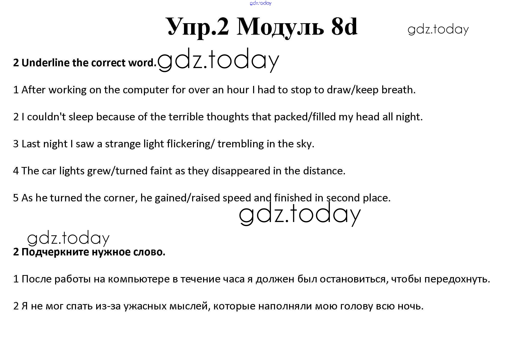 На страницах сайта gdz.today вы найдете учебный и вспомогательный материал, направленный на улучшения знаний школьной программы. ГДЗ - онлайн мир знаний Часть 8d Решение к Module 8 2 Рабочей тетради по Английскому языку для 10 класса Афанасьева, Дули Базовый уровень Просвещение Spotlight 2015