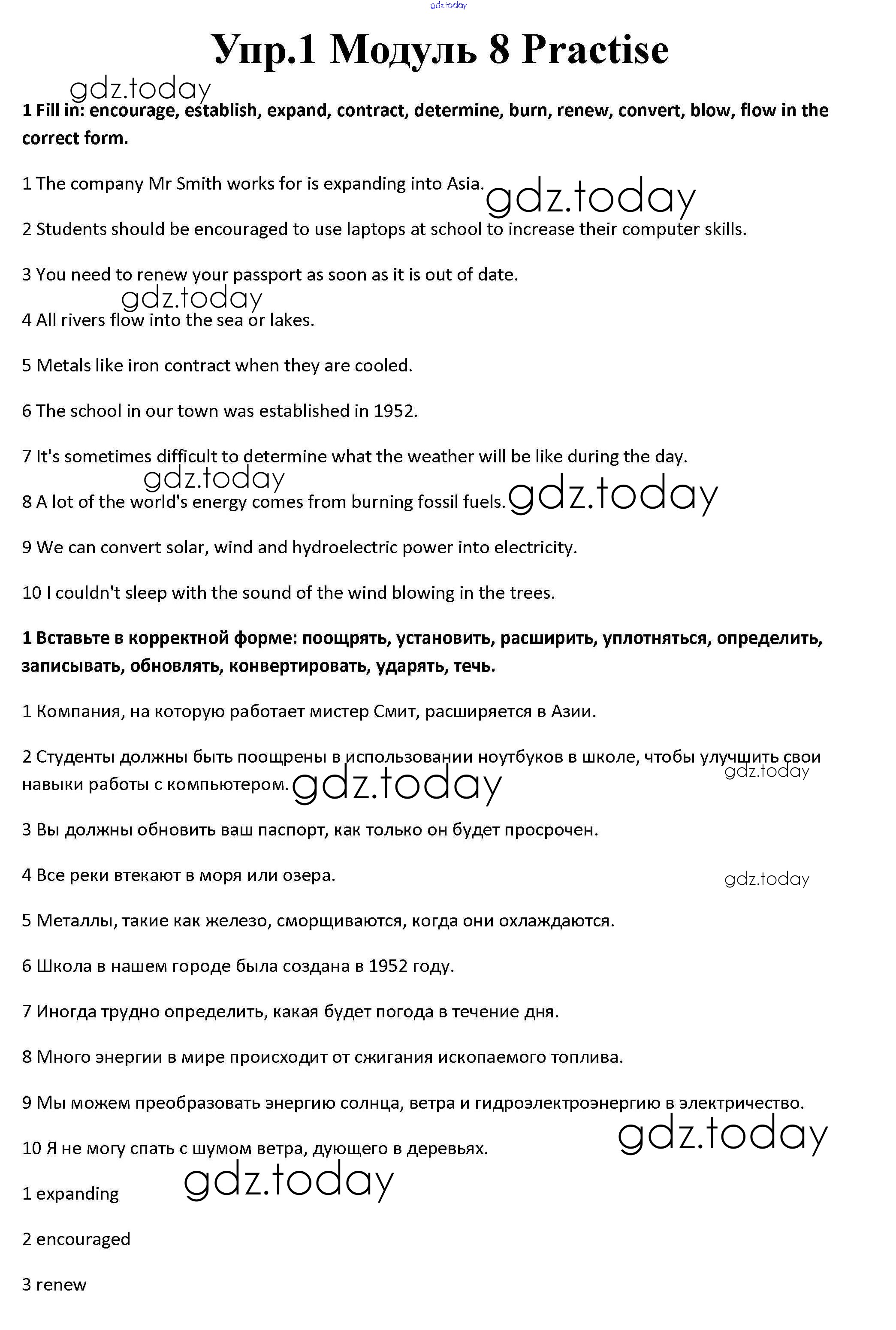 На страницах сайта gdz.today вы найдете учебный и вспомогательный материал, направленный на улучшения знаний школьной программы. ГДЗ - онлайн мир знаний Vocabulary Practice Решение к Module 8 1 Рабочей тетради по Английскому языку для 10 класса Афанасьева, Дули Базовый уровень Просвещение Spotlight 2015