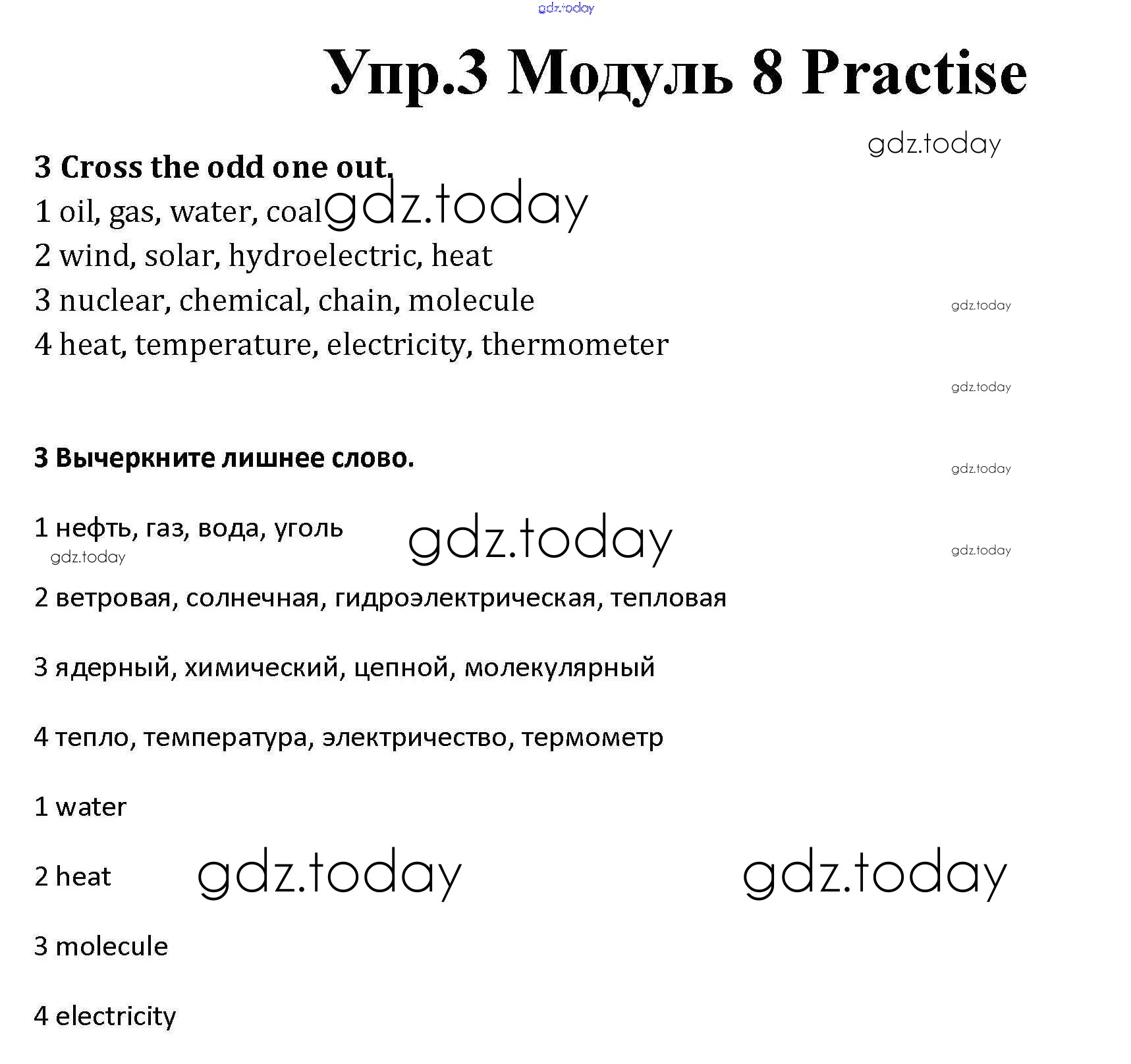 На страницах сайта gdz.today вы найдете учебный и вспомогательный материал, направленный на улучшения знаний школьной программы. ГДЗ - онлайн мир знаний Vocabulary Practice Решение к Module 8 3 Рабочей тетради по Английскому языку для 10 класса Афанасьева, Дули Базовый уровень Просвещение Spotlight 2015