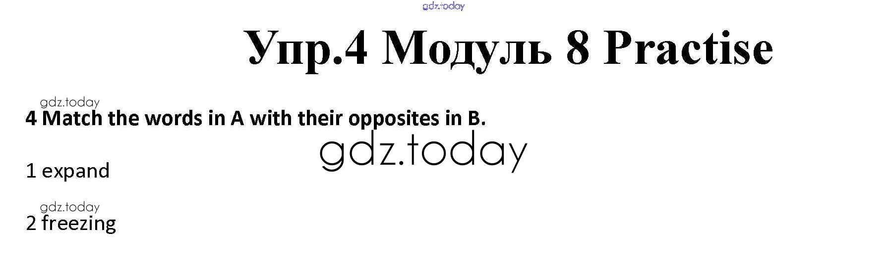 На страницах сайта gdz.today вы найдете учебный и вспомогательный материал, направленный на улучшения знаний школьной программы. ГДЗ - онлайн мир знаний Vocabulary Practice Решение к Module 8 4 Рабочей тетради по Английскому языку для 10 класса Афанасьева, Дули Базовый уровень Просвещение Spotlight 2015