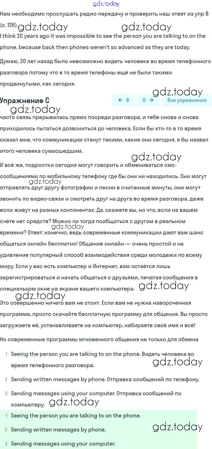 На страницах сайта gdz.today вы найдете учебный и вспомогательный материал, направленный на улучшения знаний школьной программы. ГДЗ - онлайн мир знаний Решение. Страницы 126 Учебнику по Английскому языку для 10 класса Комарова, Ларионова Базовый уровень Русское слово Инновационная школа 2018