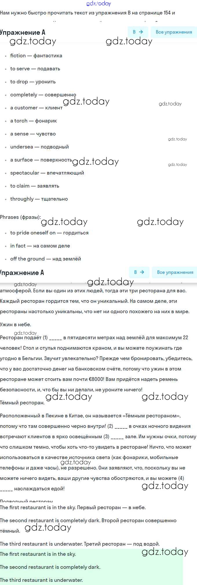 На страницах сайта gdz.today вы найдете учебный и вспомогательный материал, направленный на улучшения знаний школьной программы. ГДЗ - онлайн мир знаний Решение. Страницы 154 Учебнику по Английскому языку для 10 класса Комарова, Ларионова Базовый уровень Русское слово Инновационная школа 2018