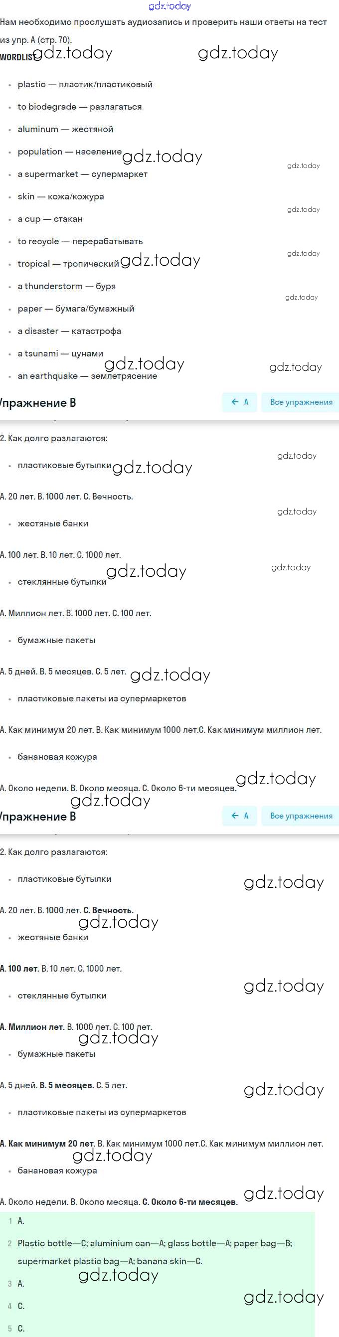 На страницах сайта gdz.today вы найдете учебный и вспомогательный материал, направленный на улучшения знаний школьной программы. ГДЗ - онлайн мир знаний Решение. Страницы 70 Учебнику по Английскому языку для 10 класса Комарова, Ларионова Базовый уровень Русское слово Инновационная школа 2018