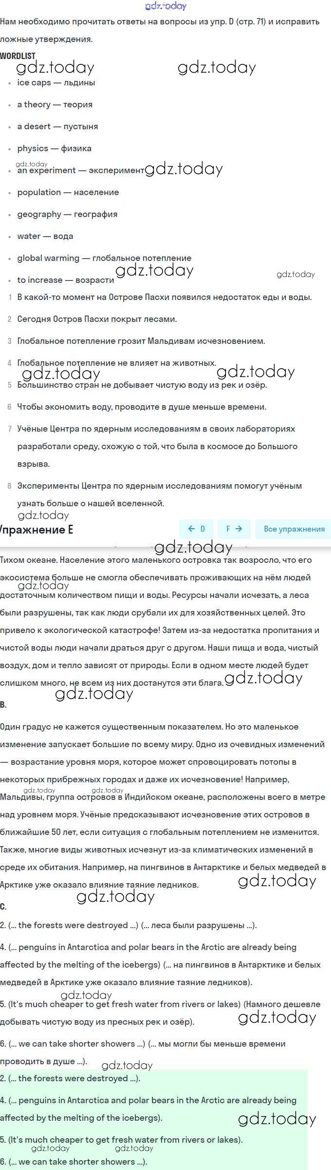 На страницах сайта gdz.today вы найдете учебный и вспомогательный материал, направленный на улучшения знаний школьной программы. ГДЗ - онлайн мир знаний Решение. Страницы 71 Учебнику по Английскому языку для 10 класса Комарова, Ларионова Базовый уровень Русское слово Инновационная школа 2018