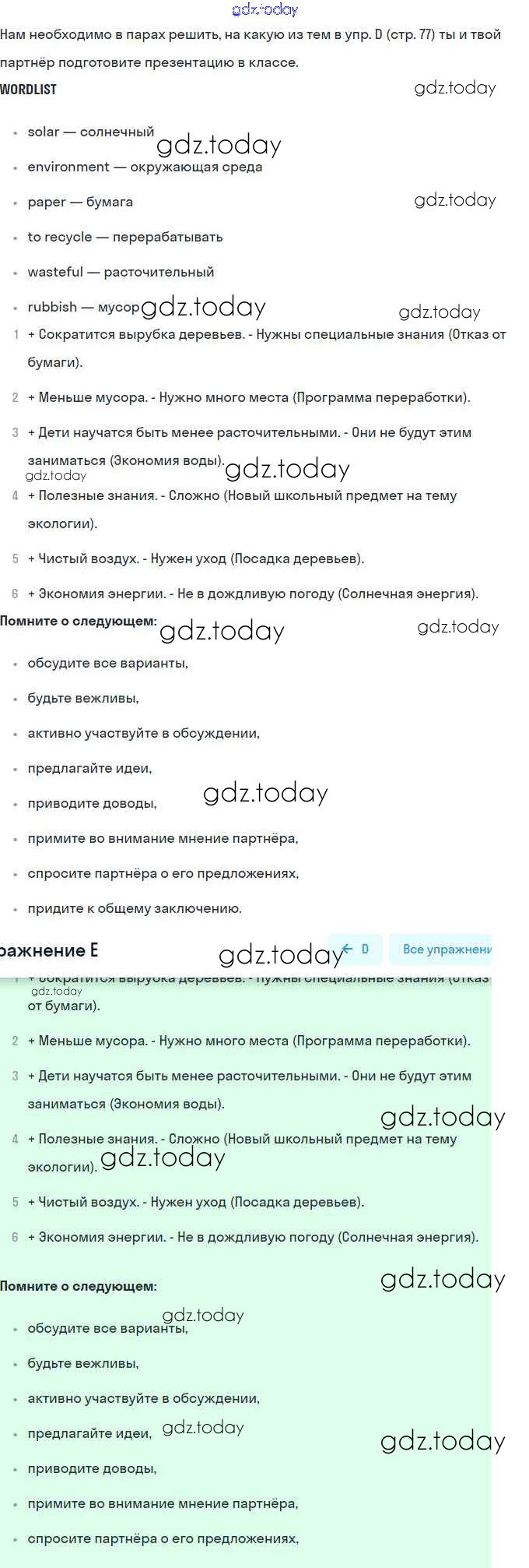На страницах сайта gdz.today вы найдете учебный и вспомогательный материал, направленный на улучшения знаний школьной программы. ГДЗ - онлайн мир знаний Решение. Страницы 77 Учебнику по Английскому языку для 10 класса Комарова, Ларионова Базовый уровень Русское слово Инновационная школа 2018