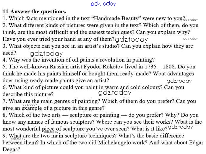 На страницах сайта gdz.today вы найдете учебный и вспомогательный материал, направленный на улучшения знаний школьной программы. ГДЗ - онлайн мир знаний Решение к Unit 1. Man the Creator 11 Учебнику по Английскому языку для 10 класса Афанасьева, Михеева Углубленный уровень Просвещение 2014
