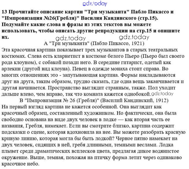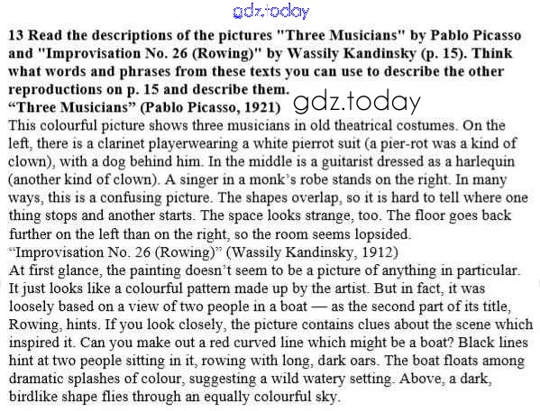 На страницах сайта gdz.today вы найдете учебный и вспомогательный материал, направленный на улучшения знаний школьной программы. ГДЗ - онлайн мир знаний Решение к Unit 1. Man the Creator 13 Учебнику по Английскому языку для 10 класса Афанасьева, Михеева Углубленный уровень Просвещение 2014