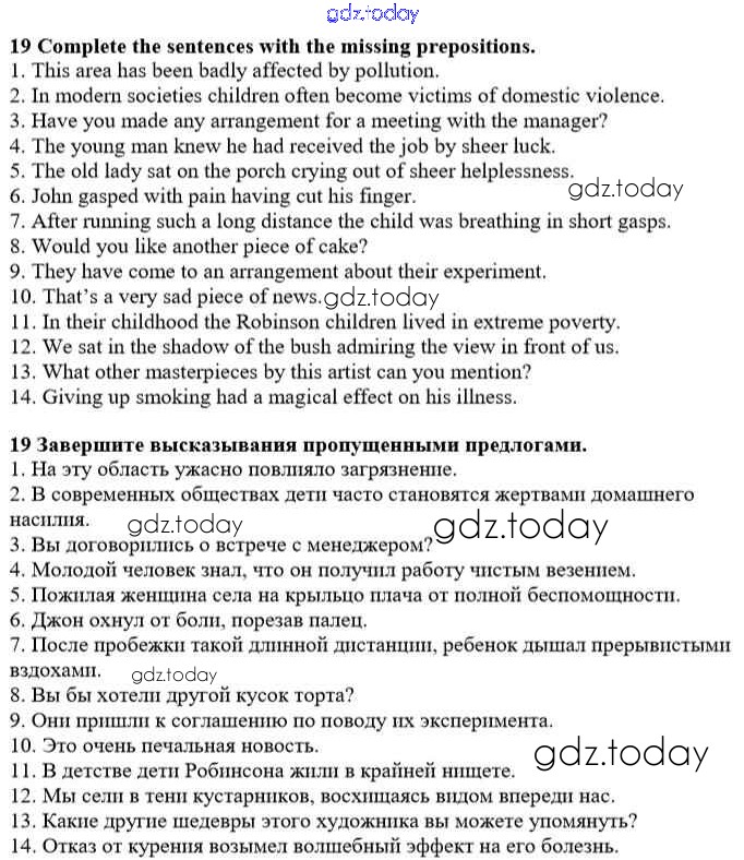 На страницах сайта gdz.today вы найдете учебный и вспомогательный материал, направленный на улучшения знаний школьной программы. ГДЗ - онлайн мир знаний Решение к Unit 1. Man the Creator 19 Учебнику по Английскому языку для 10 класса Афанасьева, Михеева Углубленный уровень Просвещение 2014