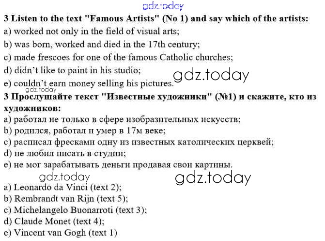 На страницах сайта gdz.today вы найдете учебный и вспомогательный материал, направленный на улучшения знаний школьной программы. ГДЗ - онлайн мир знаний Решение к Unit 1. Man the Creator 3 Учебнику по Английскому языку для 10 класса Афанасьева, Михеева Углубленный уровень Просвещение 2014