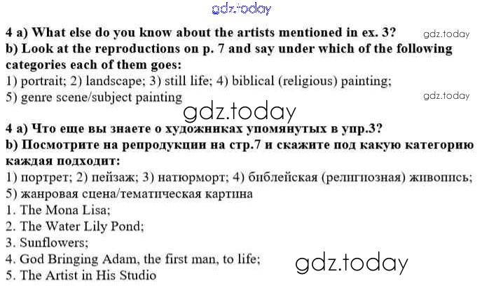 На страницах сайта gdz.today вы найдете учебный и вспомогательный материал, направленный на улучшения знаний школьной программы. ГДЗ - онлайн мир знаний Решение к Unit 1. Man the Creator 4 Учебнику по Английскому языку для 10 класса Афанасьева, Михеева Углубленный уровень Просвещение 2014