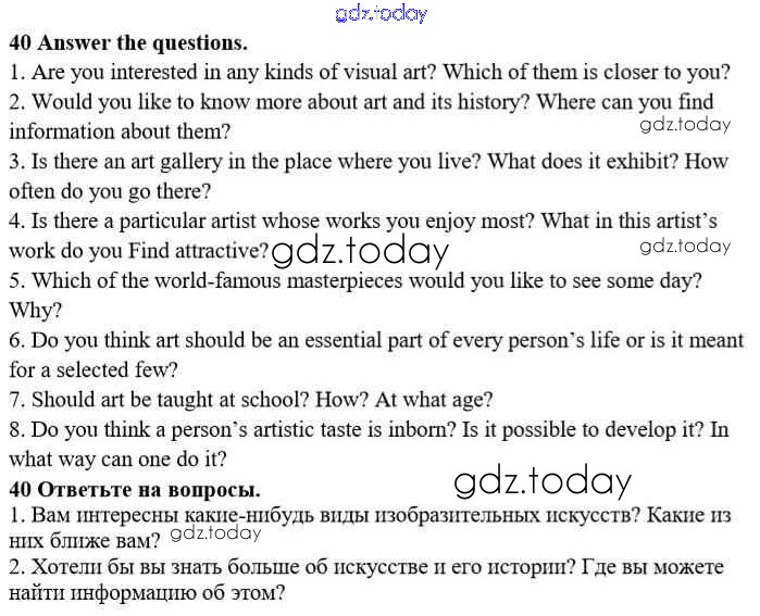 На страницах сайта gdz.today вы найдете учебный и вспомогательный материал, направленный на улучшения знаний школьной программы. ГДЗ - онлайн мир знаний Решение к Unit 1. Man the Creator 40 Учебнику по Английскому языку для 10 класса Афанасьева, Михеева Углубленный уровень Просвещение 2014