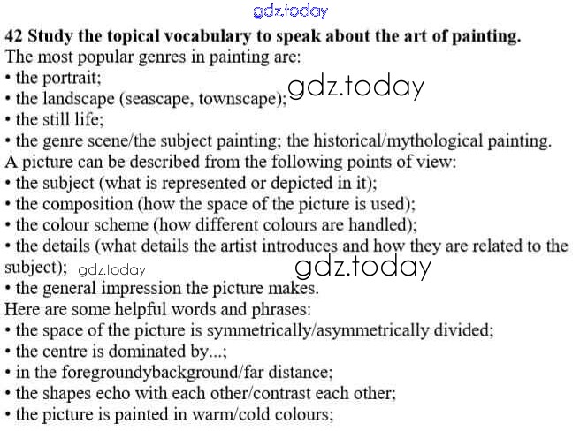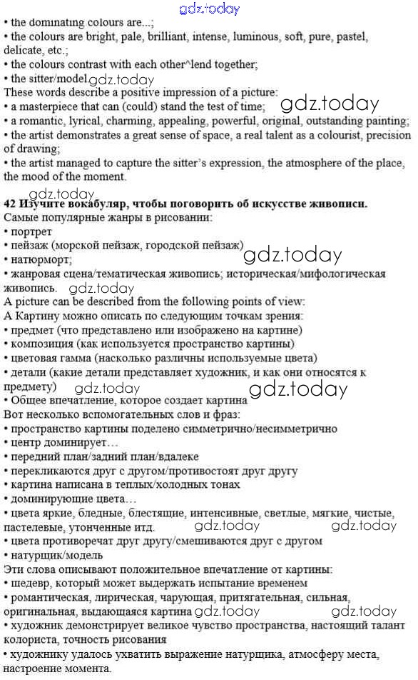 На страницах сайта gdz.today вы найдете учебный и вспомогательный материал, направленный на улучшения знаний школьной программы. ГДЗ - онлайн мир знаний Решение к Unit 1. Man the Creator 42 Учебнику по Английскому языку для 10 класса Афанасьева, Михеева Углубленный уровень Просвещение 2014