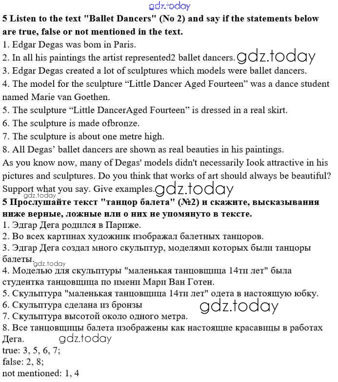 На страницах сайта gdz.today вы найдете учебный и вспомогательный материал, направленный на улучшения знаний школьной программы. ГДЗ - онлайн мир знаний Решение к Unit 1. Man the Creator 5 Учебнику по Английскому языку для 10 класса Афанасьева, Михеева Углубленный уровень Просвещение 2014