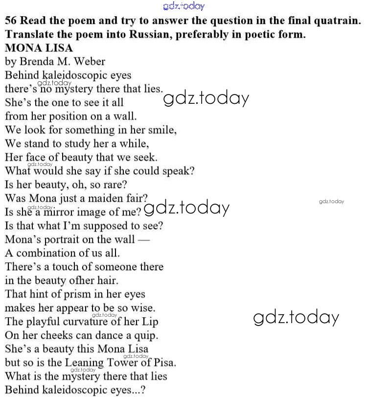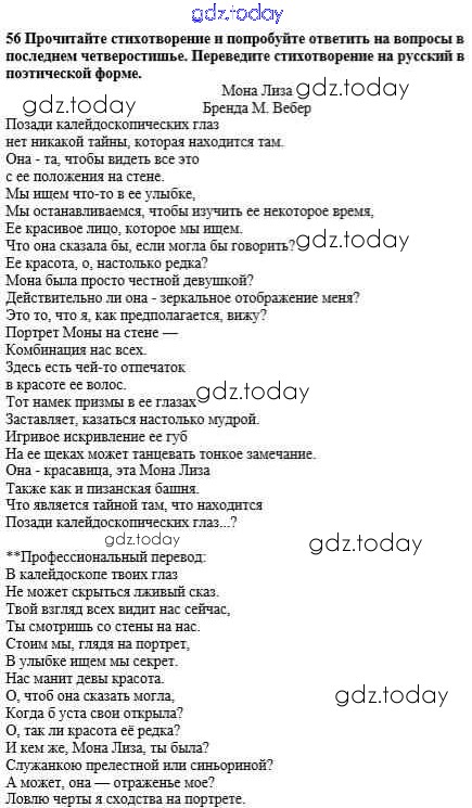 На страницах сайта gdz.today вы найдете учебный и вспомогательный материал, направленный на улучшения знаний школьной программы. ГДЗ - онлайн мир знаний Решение к Unit 1. Man the Creator 56 Учебнику по Английскому языку для 10 класса Афанасьева, Михеева Углубленный уровень Просвещение 2014