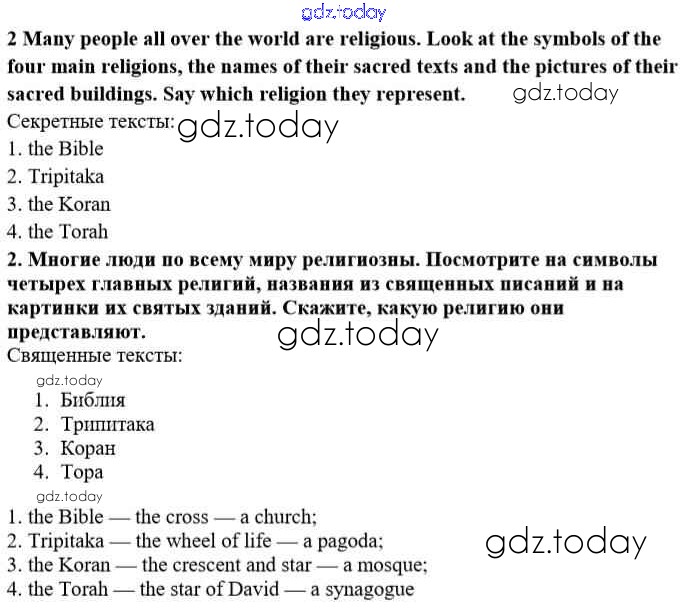 На страницах сайта gdz.today вы найдете учебный и вспомогательный материал, направленный на улучшения знаний школьной программы. ГДЗ - онлайн мир знаний Решение к Unit 2. Man the Beliver 2 Учебнику по Английскому языку для 10 класса Афанасьева, Михеева Углубленный уровень Просвещение 2014