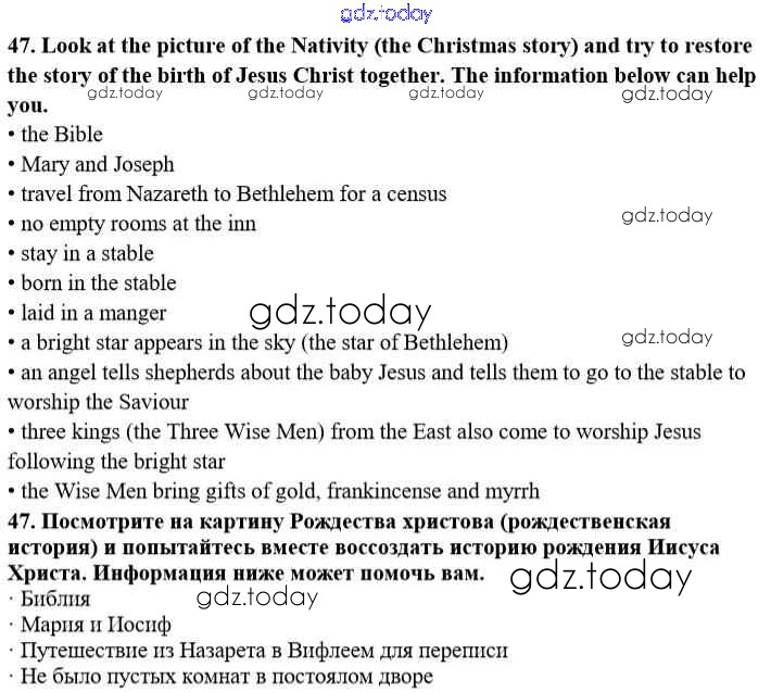 На страницах сайта gdz.today вы найдете учебный и вспомогательный материал, направленный на улучшения знаний школьной программы. ГДЗ - онлайн мир знаний Решение к Unit 2. Man the Beliver 47 Учебнику по Английскому языку для 10 класса Афанасьева, Михеева Углубленный уровень Просвещение 2014