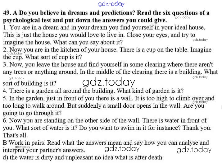На страницах сайта gdz.today вы найдете учебный и вспомогательный материал, направленный на улучшения знаний школьной программы. ГДЗ - онлайн мир знаний Решение к Unit 2. Man the Beliver 49 Учебнику по Английскому языку для 10 класса Афанасьева, Михеева Углубленный уровень Просвещение 2014