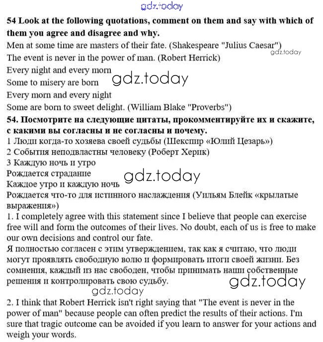 На страницах сайта gdz.today вы найдете учебный и вспомогательный материал, направленный на улучшения знаний школьной программы. ГДЗ - онлайн мир знаний Решение к Unit 2. Man the Beliver 54 Учебнику по Английскому языку для 10 класса Афанасьева, Михеева Углубленный уровень Просвещение 2014