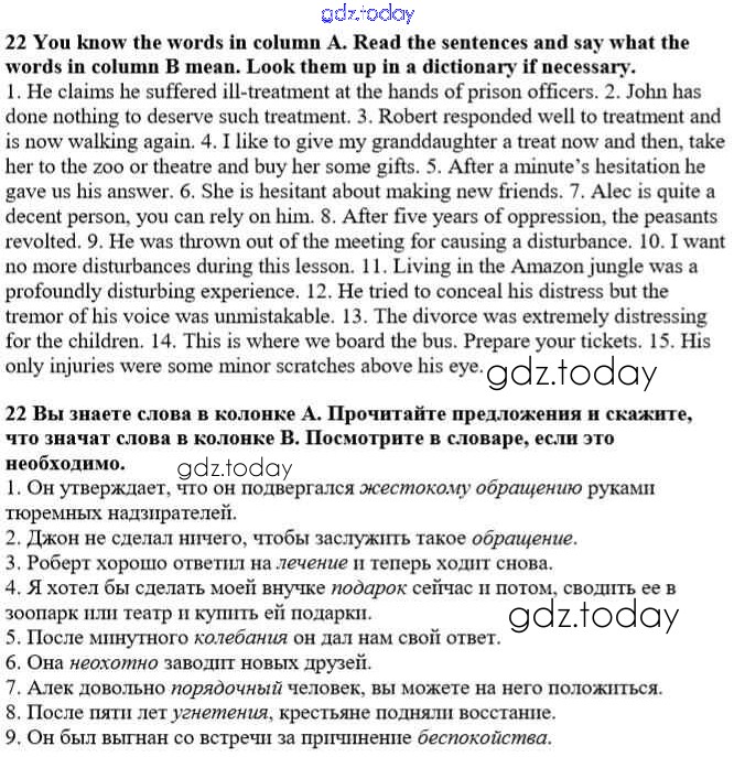 На страницах сайта gdz.today вы найдете учебный и вспомогательный материал, направленный на улучшения знаний школьной программы. ГДЗ - онлайн мир знаний Решение к Unit 3. Man - the Child of Nature 22 Учебнику по Английскому языку для 10 класса Афанасьева, Михеева Углубленный уровень Просвещение 2014