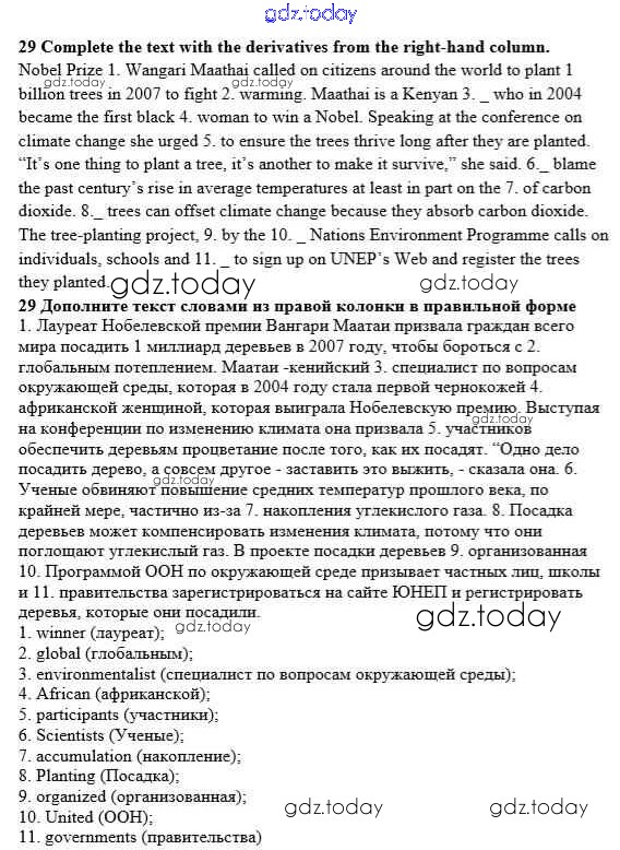 На страницах сайта gdz.today вы найдете учебный и вспомогательный материал, направленный на улучшения знаний школьной программы. ГДЗ - онлайн мир знаний Решение к Unit 3. Man - the Child of Nature 29 Учебнику по Английскому языку для 10 класса Афанасьева, Михеева Углубленный уровень Просвещение 2014