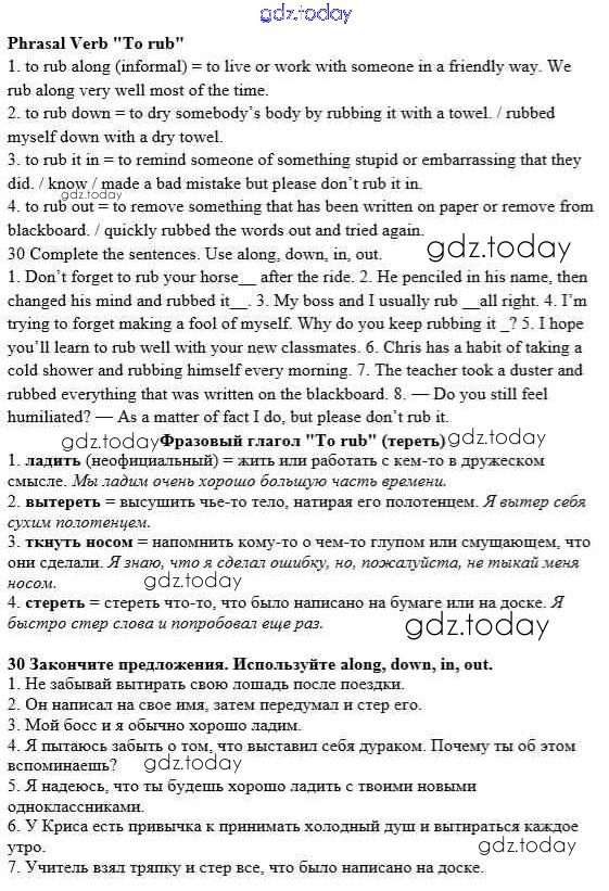 На страницах сайта gdz.today вы найдете учебный и вспомогательный материал, направленный на улучшения знаний школьной программы. ГДЗ - онлайн мир знаний Решение к Unit 3. Man - the Child of Nature 30 Учебнику по Английскому языку для 10 класса Афанасьева, Михеева Углубленный уровень Просвещение 2014