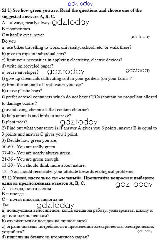 На страницах сайта gdz.today вы найдете учебный и вспомогательный материал, направленный на улучшения знаний школьной программы. ГДЗ - онлайн мир знаний Решение к Unit 3. Man - the Child of Nature 52 Учебнику по Английскому языку для 10 класса Афанасьева, Михеева Углубленный уровень Просвещение 2014