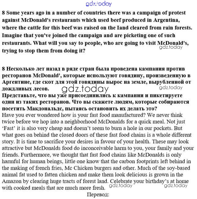 На страницах сайта gdz.today вы найдете учебный и вспомогательный материал, направленный на улучшения знаний школьной программы. ГДЗ - онлайн мир знаний Решение к Unit 3. Man - the Child of Nature 8 Учебнику по Английскому языку для 10 класса Афанасьева, Михеева Углубленный уровень Просвещение 2014