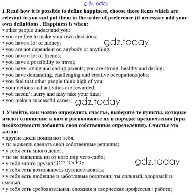 На страницах сайта gdz.today вы найдете учебный и вспомогательный материал, направленный на улучшения знаний школьной программы. ГДЗ - онлайн мир знаний Решение к Unit 4. Man - the Speeker of Happiness 1 Учебнику по Английскому языку для 10 класса Афанасьева, Михеева Углубленный уровень Просвещение 2014