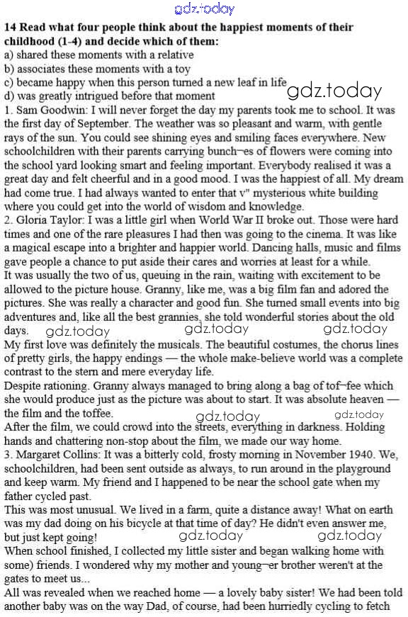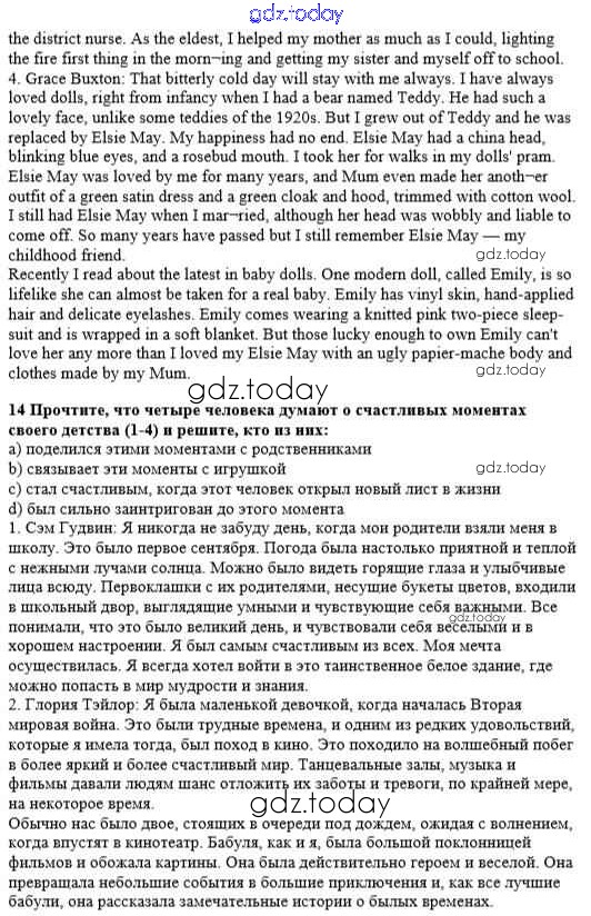На страницах сайта gdz.today вы найдете учебный и вспомогательный материал, направленный на улучшения знаний школьной программы. ГДЗ - онлайн мир знаний Решение к Unit 4. Man - the Speeker of Happiness 14 Учебнику по Английскому языку для 10 класса Афанасьева, Михеева Углубленный уровень Просвещение 2014