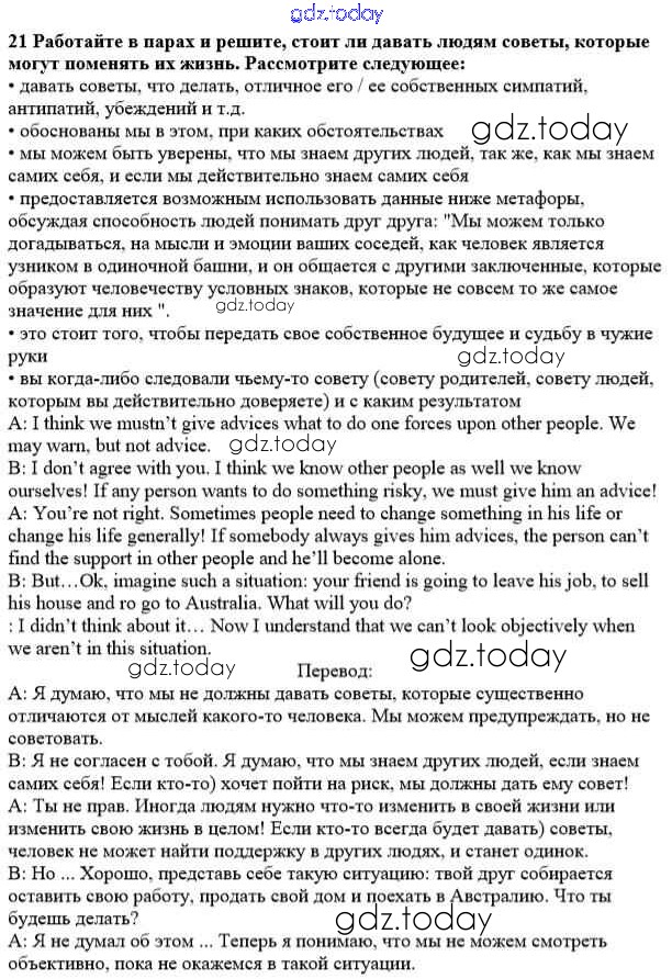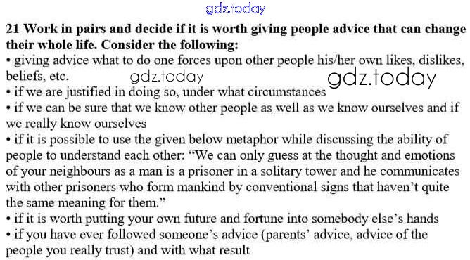 На страницах сайта gdz.today вы найдете учебный и вспомогательный материал, направленный на улучшения знаний школьной программы. ГДЗ - онлайн мир знаний Решение к Unit 4. Man - the Speeker of Happiness 21 Учебнику по Английскому языку для 10 класса Афанасьева, Михеева Углубленный уровень Просвещение 2014