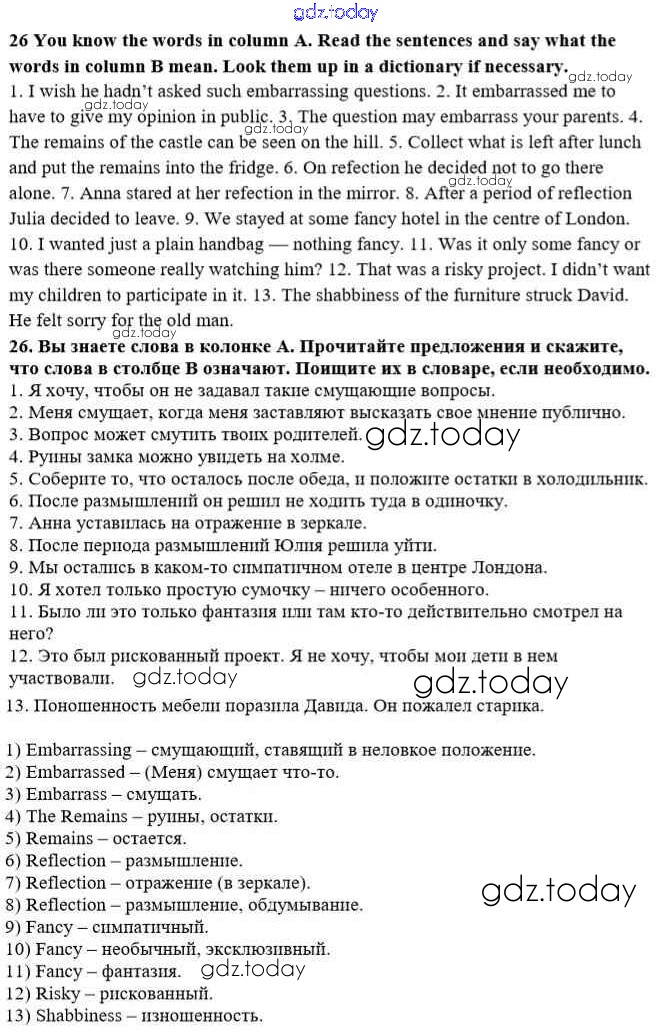 На страницах сайта gdz.today вы найдете учебный и вспомогательный материал, направленный на улучшения знаний школьной программы. ГДЗ - онлайн мир знаний Решение к Unit 4. Man - the Speeker of Happiness 26 Учебнику по Английскому языку для 10 класса Афанасьева, Михеева Углубленный уровень Просвещение 2014