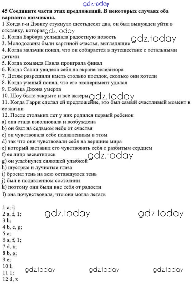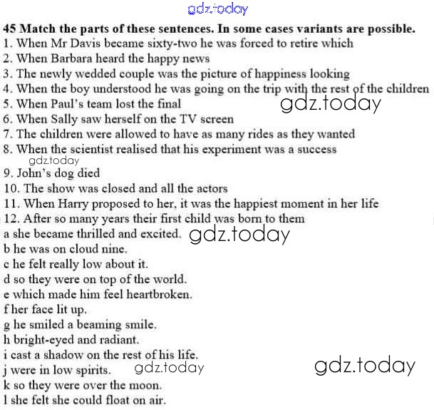 На страницах сайта gdz.today вы найдете учебный и вспомогательный материал, направленный на улучшения знаний школьной программы. ГДЗ - онлайн мир знаний Решение к Unit 4. Man - the Speeker of Happiness 45 Учебнику по Английскому языку для 10 класса Афанасьева, Михеева Углубленный уровень Просвещение 2014