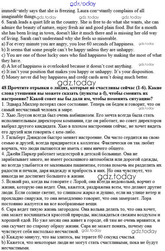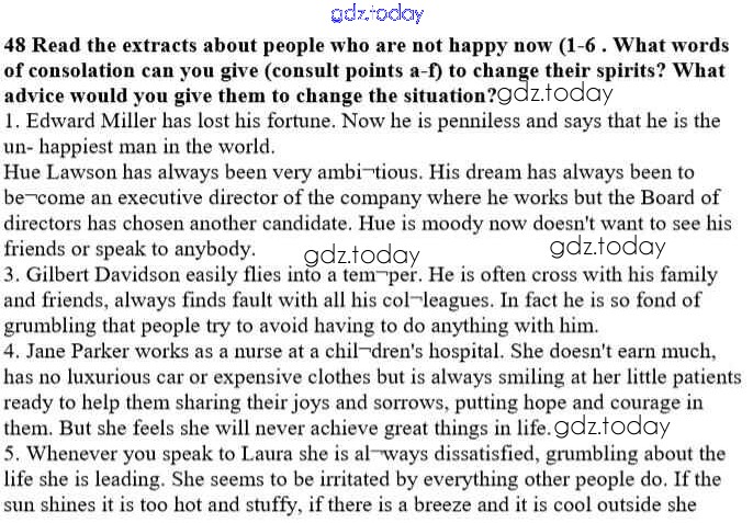 На страницах сайта gdz.today вы найдете учебный и вспомогательный материал, направленный на улучшения знаний школьной программы. ГДЗ - онлайн мир знаний Решение к Unit 4. Man - the Speeker of Happiness 48 Учебнику по Английскому языку для 10 класса Афанасьева, Михеева Углубленный уровень Просвещение 2014