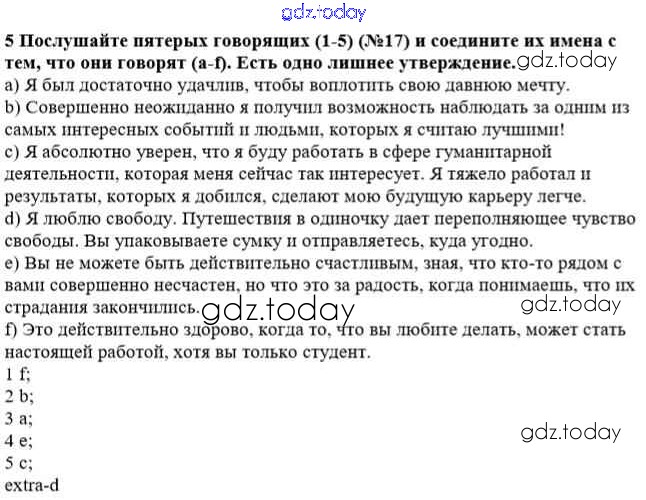 На страницах сайта gdz.today вы найдете учебный и вспомогательный материал, направленный на улучшения знаний школьной программы. ГДЗ - онлайн мир знаний Решение к Unit 4. Man - the Speeker of Happiness 5 Учебнику по Английскому языку для 10 класса Афанасьева, Михеева Углубленный уровень Просвещение 2014