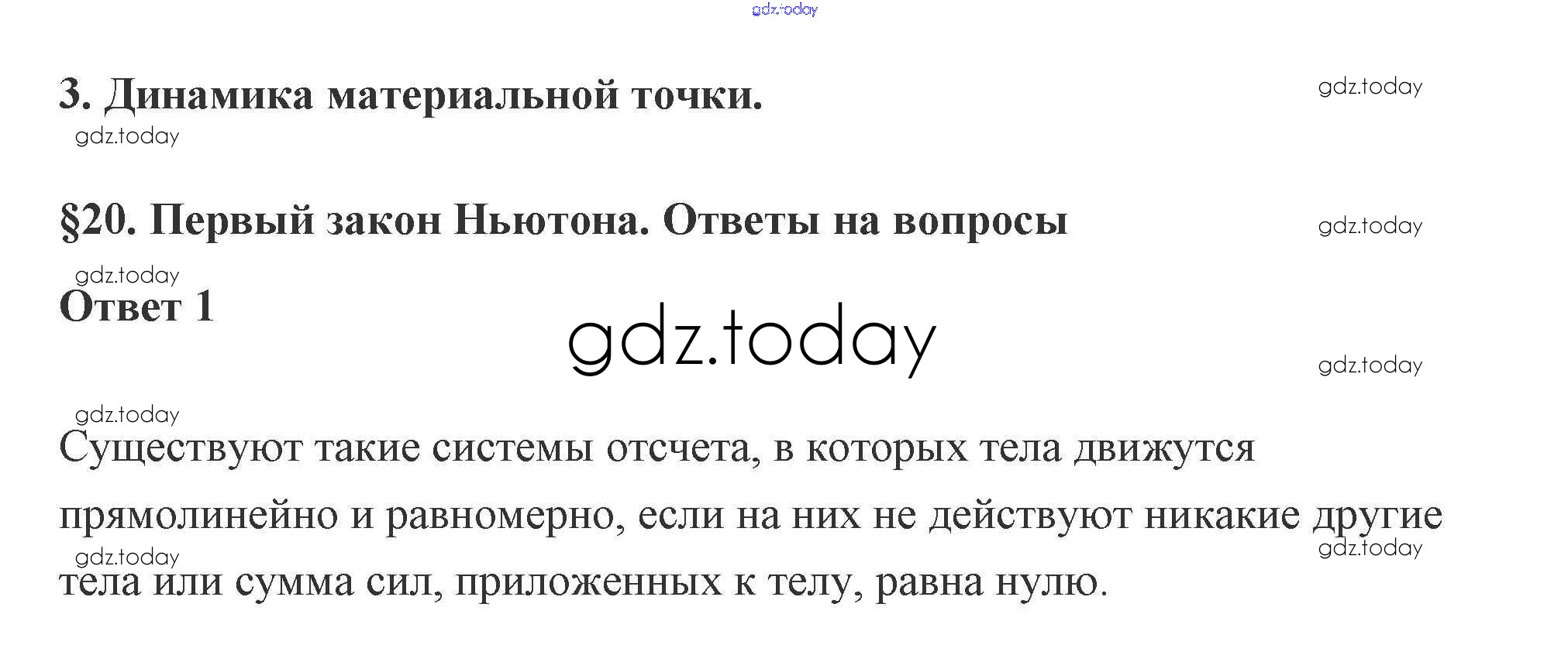 На страницах сайта gdz.today вы найдете учебный и вспомогательный материал, направленный на улучшения знаний школьной программы. ГДЗ - онлайн мир знаний 20. Первый закон Ньютона 3. Динамика материальной точки 1 Учебнику по Физике для 10 класса Касьянов Дрофа 2018